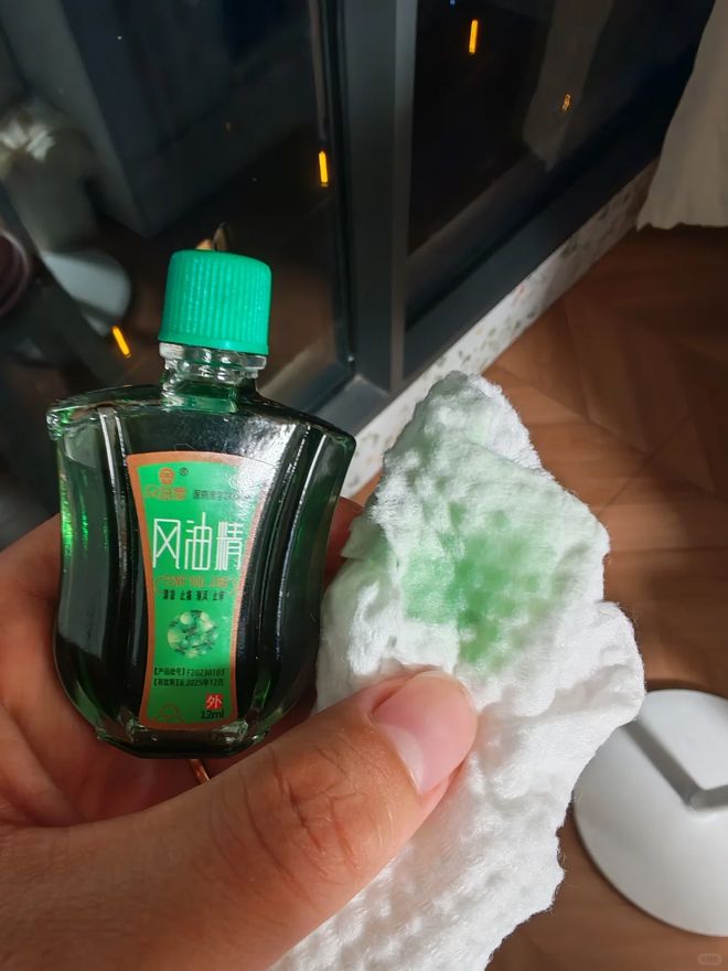 而我妈告诉我,家里的风油精就可以去除胶迹,根本没必要花钱买除胶剂。我们只需要将风油精涂抹在有胶迹的地方,让它静置一会儿,