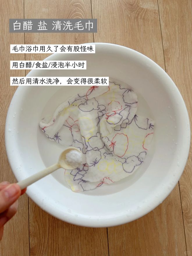 所以我们更应该注意毛巾的日常清洁,在洗毛巾的时候在水中放入适量的白醋和食用盐,让毛巾浸泡半个小时左右之后再来搓洗,