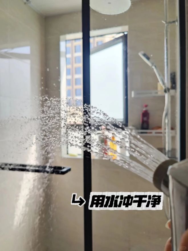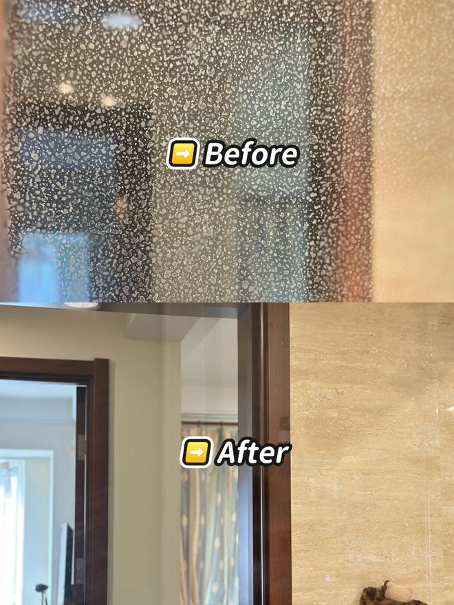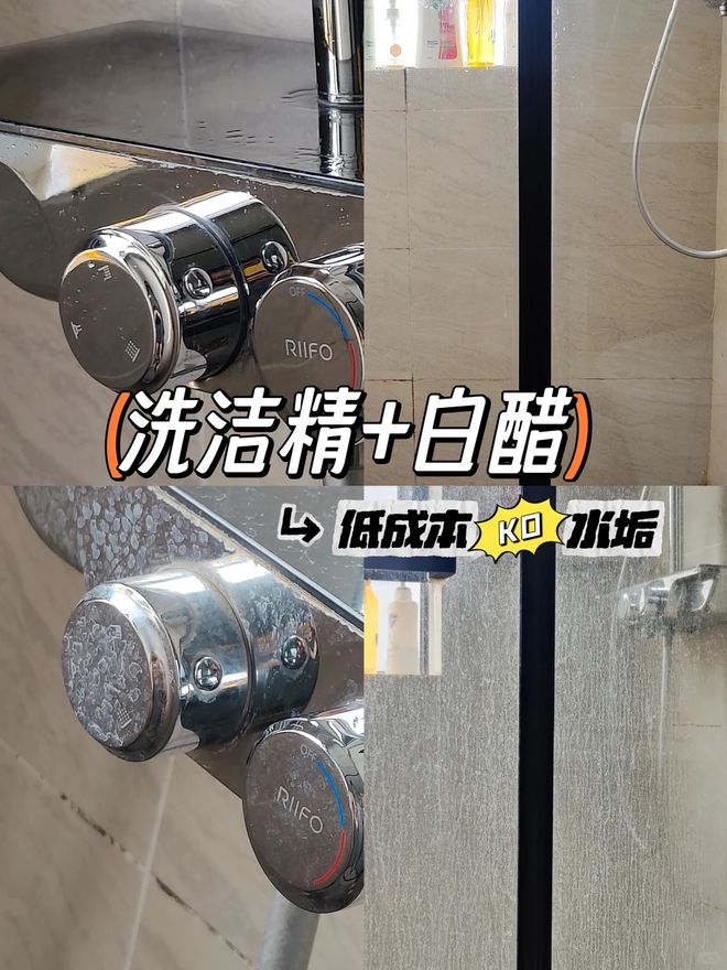 把它喷在有水垢的地方,再用洗碗棉打圈擦拭。你会发现无论是浴室的玻璃,还是水龙头花洒,擦完的时候就跟新的一样透亮。